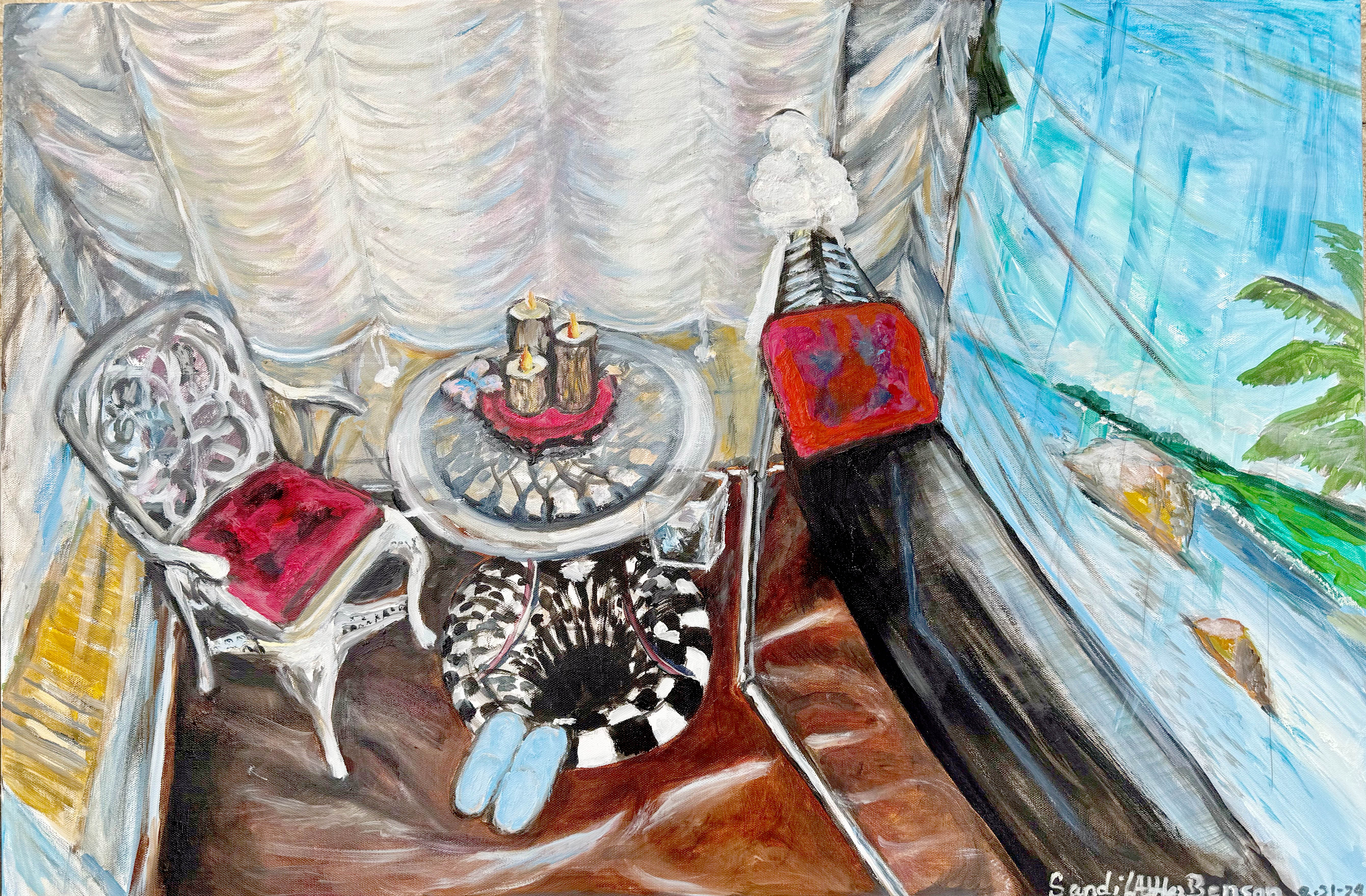 Happy Summer 2025 – The Political Pergola SCROLL TO SEE FULL DISCRIPTION> | 2024 | 36”x24” | Addresses our political arena, plea for cooperation and acknowledgment of the dangers of our times | Red, white and blue | Brown | Elemental commentary on the fundamental pattern of abuse of the races which is still an issue in America |